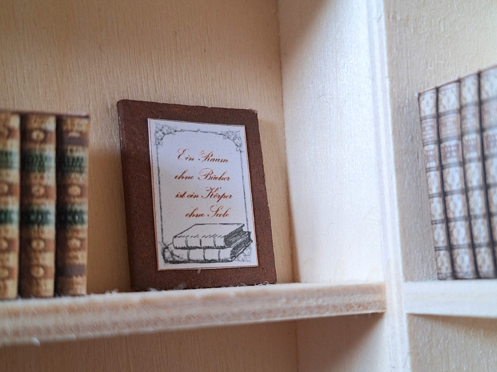 Je nachdem, wie groß deine gewählte Laterne ist, kannst du die Einrichtung deiner Bibliothek ausweiten. Schau dich einfach mal bei Puppenhaus-Accessoires um oder lass dich von Miniatur-Künstler:innen inspirieren. Hier habe ich ein paar Ideen für dich gesammelt, von denen du dich inspirieren lassen kannst.